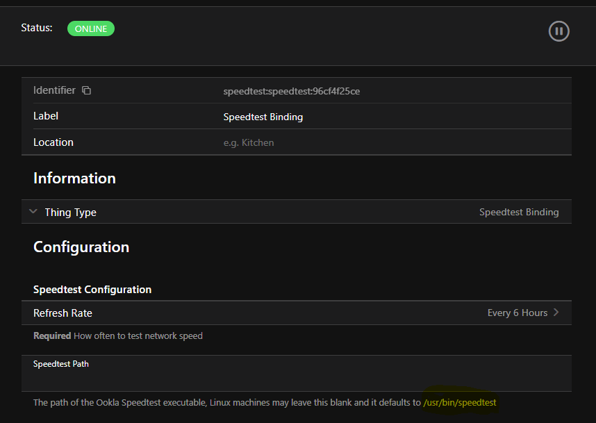 Just came here to say thank you to @bhomeyer for making this binding. I tried the old speedtest binding back in OH2 and it broke many many times. Then when I moved to OH3 I tried using the network binding speedtest and it has no documentation on how to configure it to make it work, but seemingly doesn’t work for me. This binding simply dropped in, downloaded and installed speedtest, connected my already existing items from previous tried and it just worked out of the box. No fuss. Quickly reading through this thread it appears that nearly all of the people who have issues didn’t understand how to set the exec permissions correctly for the speedtest binary.