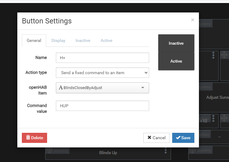 or Item BlindsSunriseAdjustMinutes received update