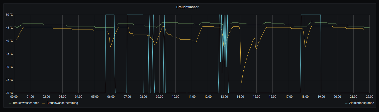 The blue “spikes” are from the Zirkulationspumpe item. At around 13h (1 pm) you can see quite a bit of turning off/on of the pump as I was testing..