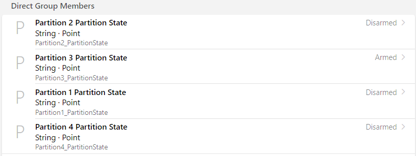 Partition 1 Partition State - Disarmed Partition 2 Partition State - Disarmed Partition 3 Partition State - Armed Partition 4 Partition State - Disarmed