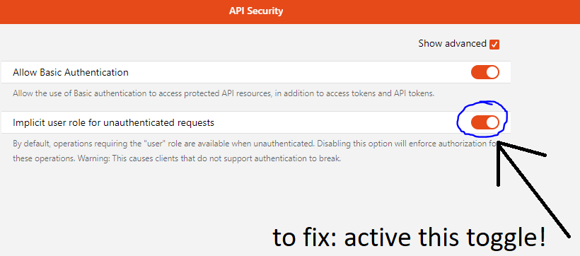 For me that is not the solution, I have the option “Implicit user role for unauthenticated requests” turned on but nothing is changed.