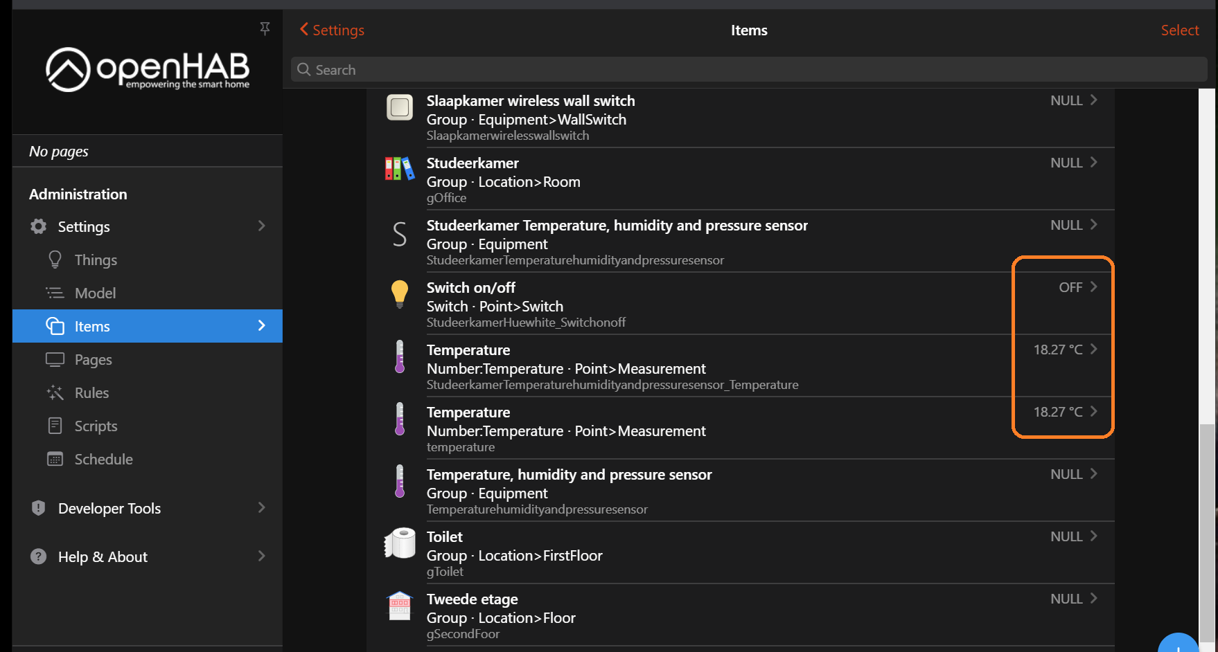when I go to my item list (Main UI), I see that temperature value and on / off status is filled in / visible, but no item value is visible on a card or on a widget on a page