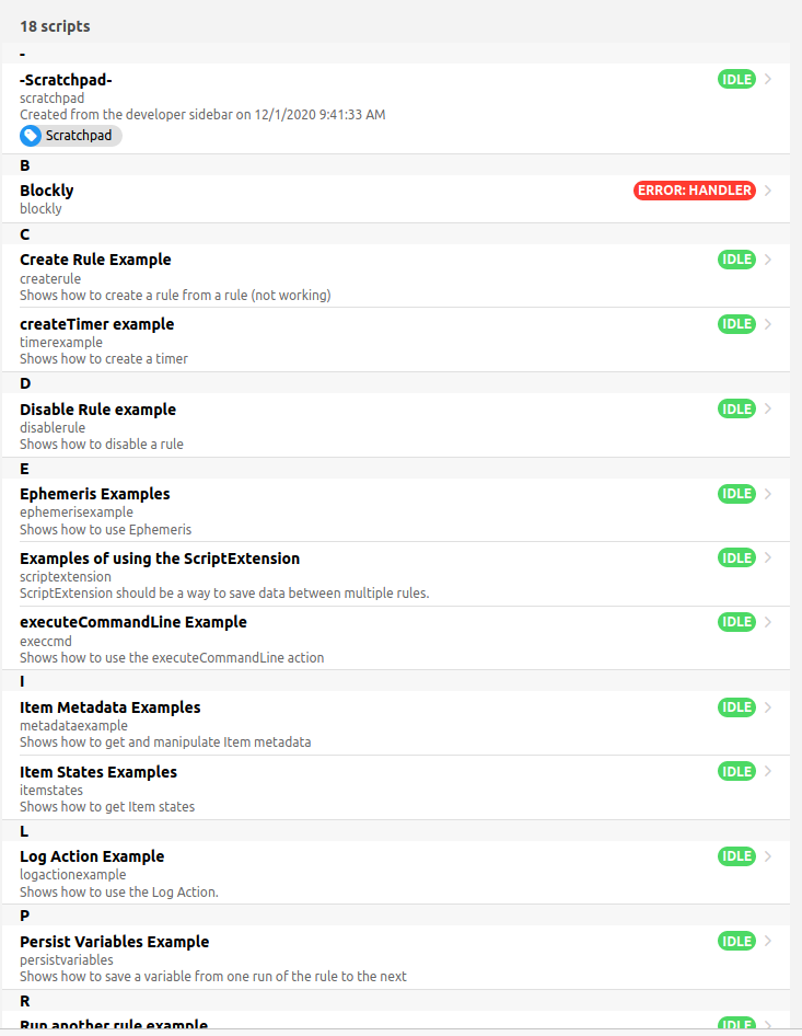 If I have to figure out how to do something (e.g. call a new Action, call another rule, etc) I’ll create a new Script (right under Rules in the settings in MainUI) and experiment with that until I figure out how to do it. Once I do figure it out, I keep the Script for reference and transfer that to the Rule I’m working on. From there I’ll move the code to a library (see OH 3 Examples: Writing and using JavaScript Libraries in MainUI created Rules) or just copy and paste it into a new rule when I need to do that again.
