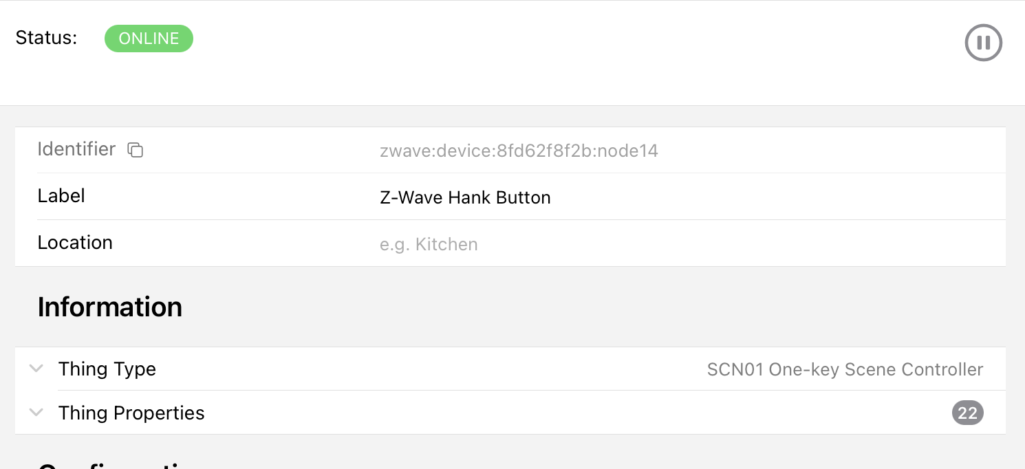 I bought a Neeo controller to manage home theatre setup and also z-wave components. Then the Neeo company got bought and servers would be taken down after two years, so I started to look for a new z-wave controller. I ended up with a z-stick connected to rPi. I then transfered control of all z-wave components to the rPi running Home Assistant and I think I left the Neeo as a “secondary controller”. I had some problems with HA, so I switched to OpenHAB. I think one of the components that got transfered to rPi from Neeo was a Hank SCN01 scene controller. Just recently I tried to get it to work with OpenHAB but it didn’t play well with the controller (it was only reported as “unknown device”) so I reset it and removed it from the z-stick with the Simplicity Studio PC Controller software. There was no problem then to include it again with OpenHAB and it was fully recognized.