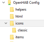 openHAB provides a set of classic icons by default. Users may add their own icons in either png or svg format in the openHAB icons configuration folder, $OPENHAB_CONF/icons/classic/ .