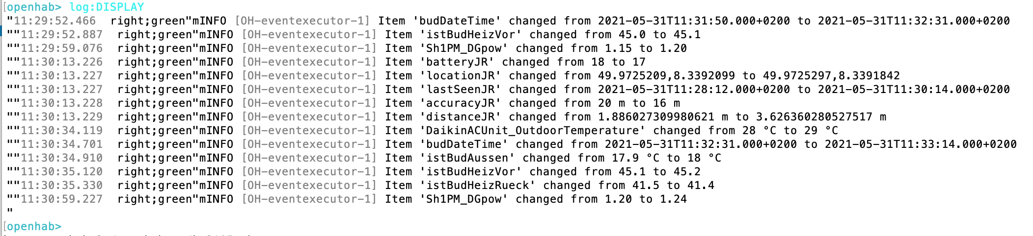 It also seems that the log:DiSPLAY has now the ātailā option per default as I only get the last few lines when running the command???