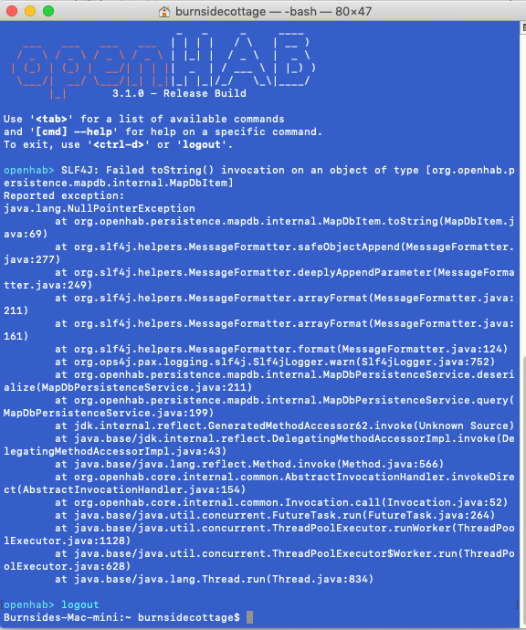 I did a logout/startup of the new OH a few times but it still generated this error list in the terminal.