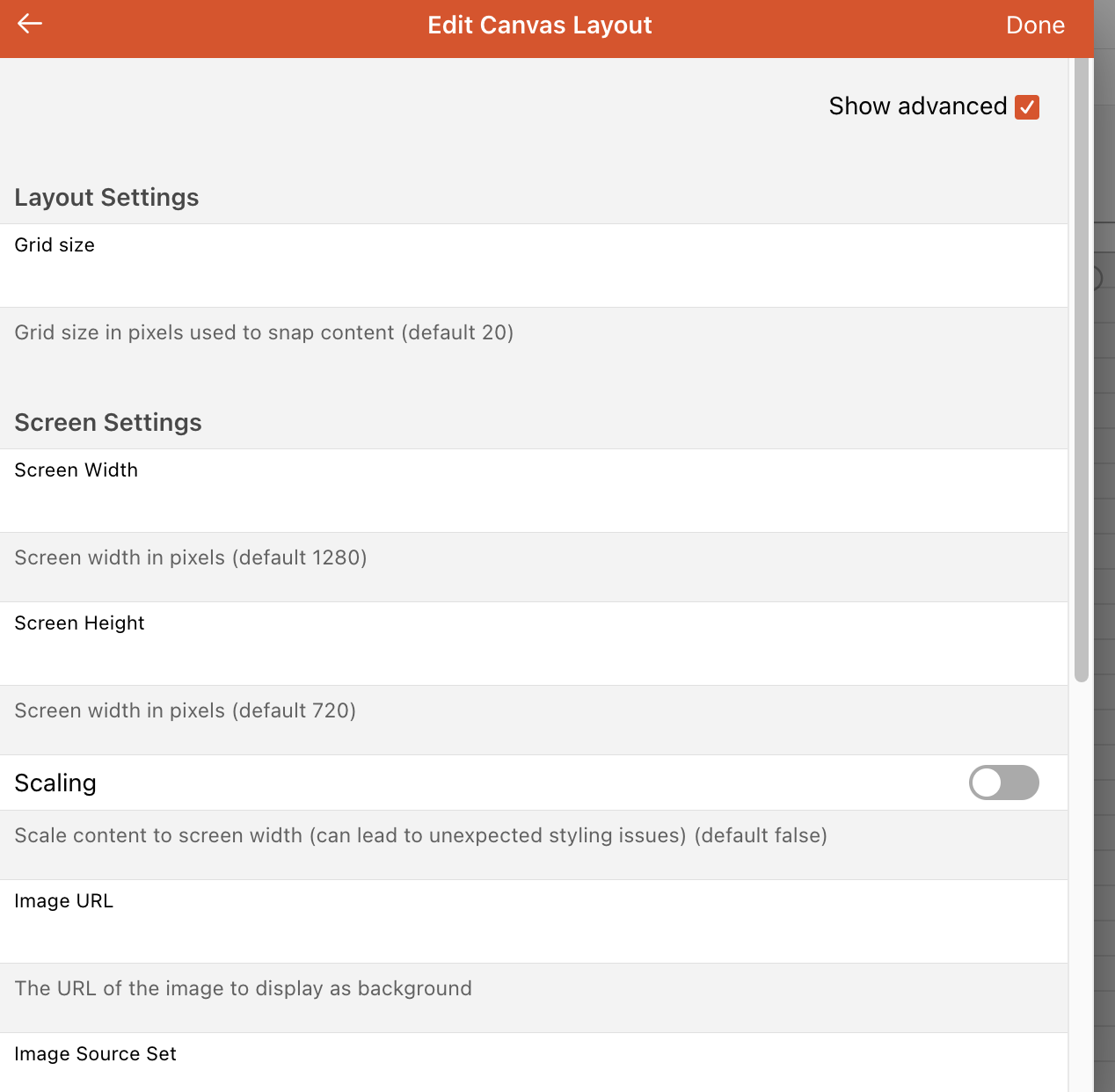 M3: the “Number of columns” and “margin” went away and more settings for Canvas