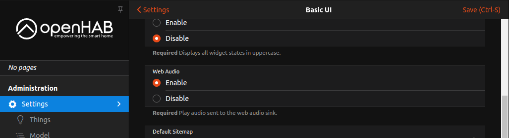 On my side, I only changed the openHAB server setting to select âWeb Audioâ as default audio sink, and I also changed the MainUI option to enable Web Audio in Main UI.