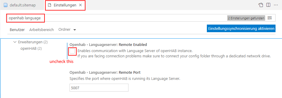 As Andrew said, one should disable the language server in the settings of the openhab plugin for VScode.