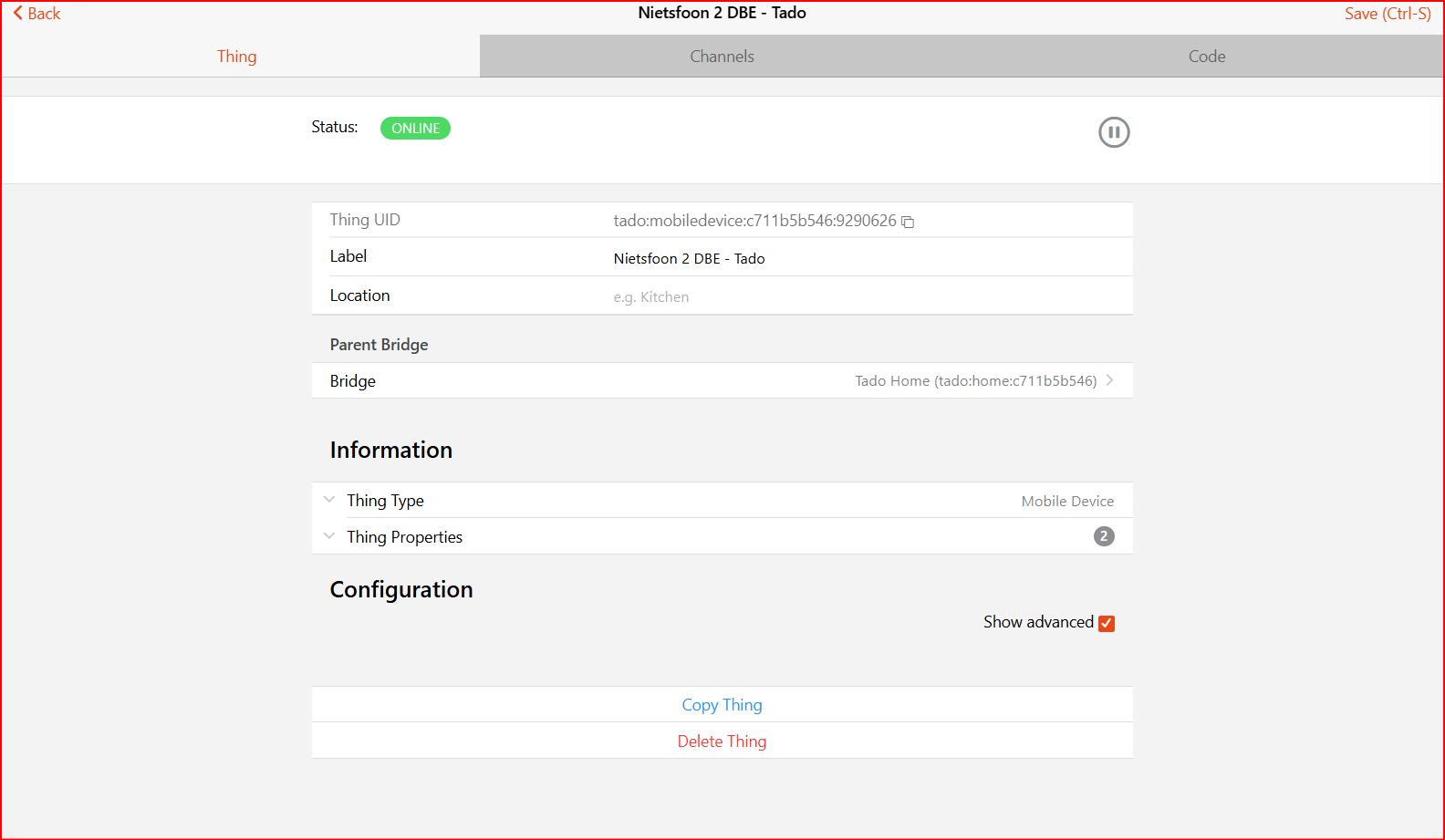 I now seem unable to make āShow advancedā work in thing configuration. In fact, none of the configurations appear: