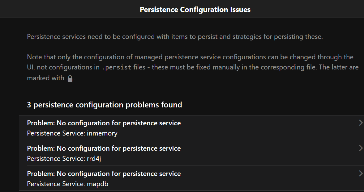 @chris66 can either run the upgradeTool or go to Settings → Persistence and create a configuration. To reproduce the same config as was built into the add-ons previously select “all Items” with strategies “everyChange, restoreOnStartup”. For rrd4j, include “everyMinute” as well. However, now is a great time to remove a potential source of race conditions and make sure only one of your persistence configs does restoreOnStartup.