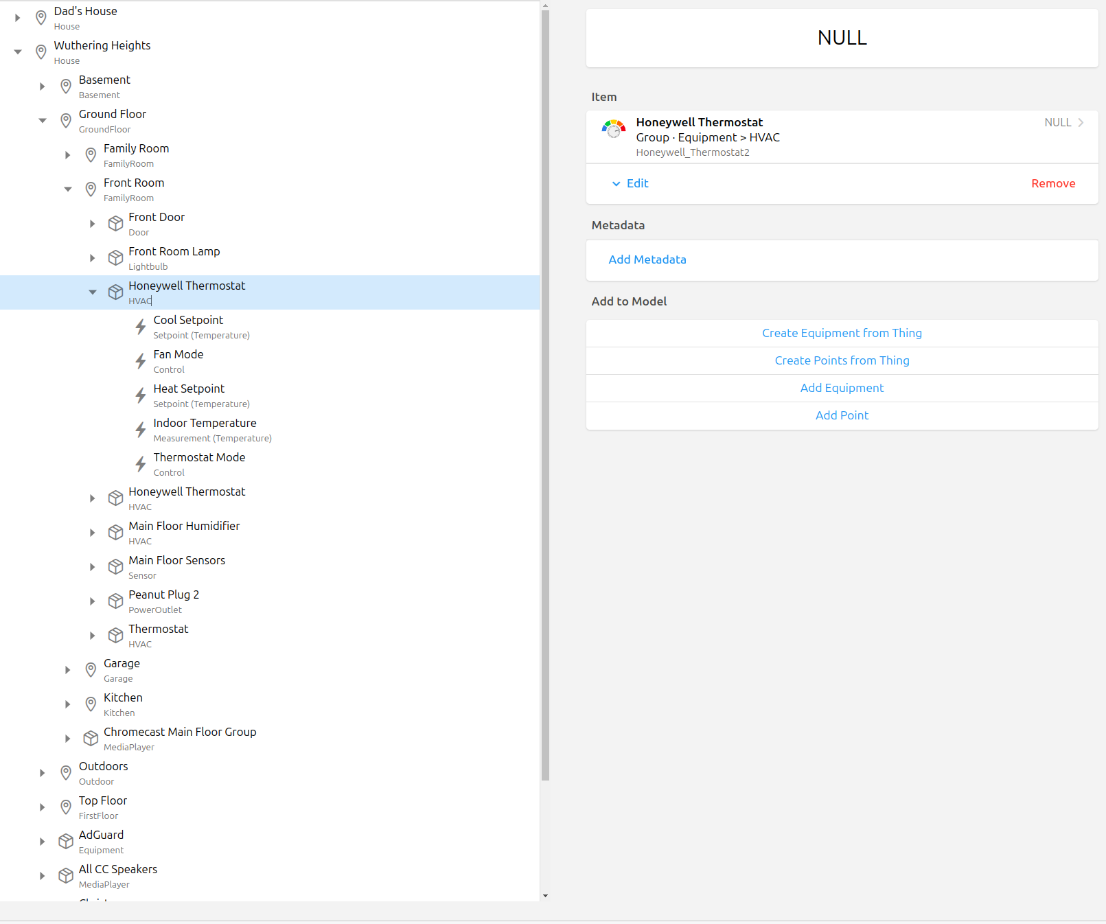 Click “Add equipment to model” since we want to add this “new” thermostat to the model. I put “new” in quotes because you can clearly see I’ve already added it.
