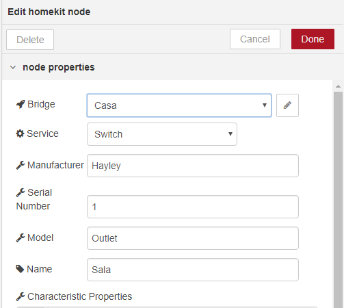 If you double click on the homekit node, it opens properties like this