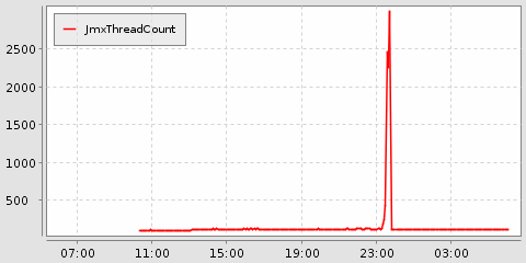 The 3000 threads could easily account for the spike in the virtual memory usage. I’m going to continue to monitor the situation, but I’m increasingly thinking that the Sonos binding is the culprit.