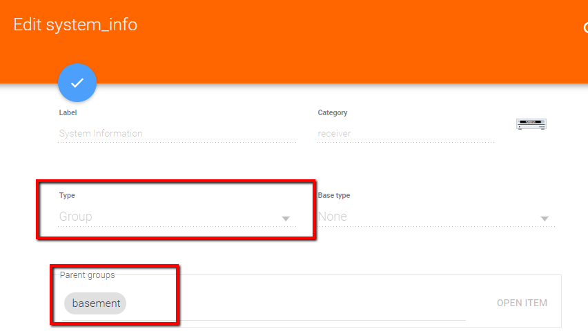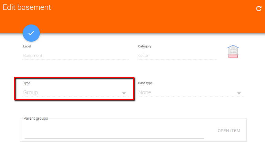 I want to use the out-of-the-box functionality for adding things and their items, so to speak simple mode. After creating the items I would like to group them. So I turn off simple mode and try to edit the group attribute for the items.