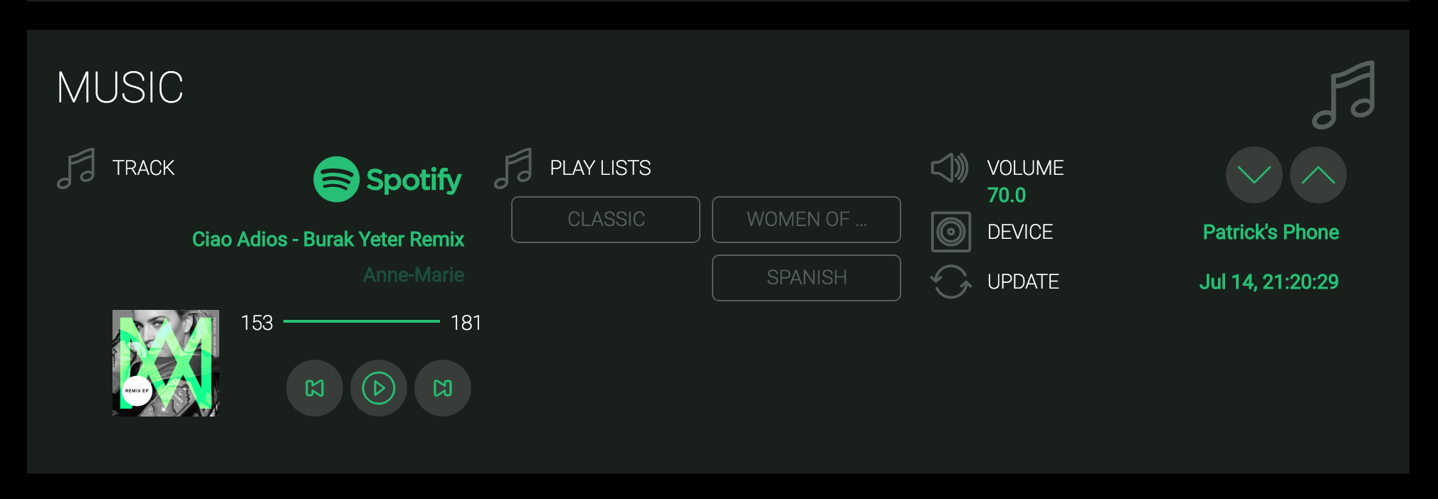 The spotify interface is on the “ground floor widget” which is “interactive”.