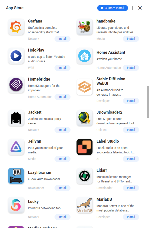 The casaOS project looks interesting for those that newly setup a homeserver - and maybe it’s something to evaluate. I only played a bit with the demo server of the project - so I can not vouch for the quality & how e.g. container would be configured to use a host usb device - but it looks very interesting for those that would like setup different services on their servers in an easy way and to have a nice UI: https://casaos.io