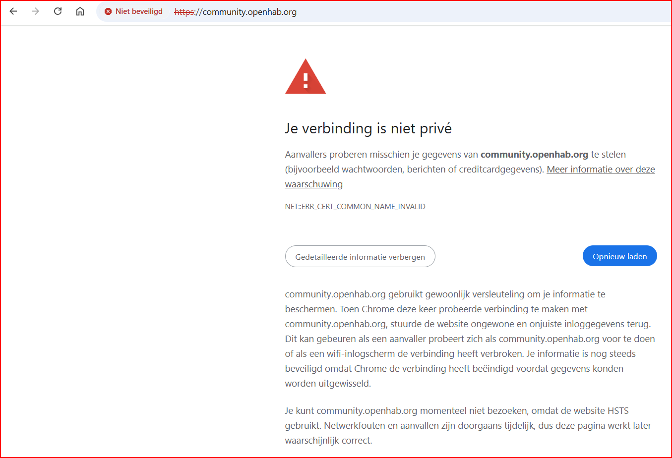 Sorry, the issue is because the certificate from Netlify is not issued for openhab.org ; typically, we proxy it through Cloudflare, so that Cloudflare provides a valid TLS certificate; temporarily, our nameserver is now not the Cloudflare one, so that the proxying does not work. I hope that I can fix this by this afternoon again. Sorry for the inconvenience!