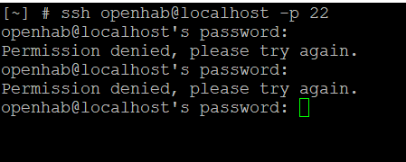 - type a password like written in the documentary. I check all combinatin: openhab, habopen openhabian, habianopen, Openhab ect. and still access denied