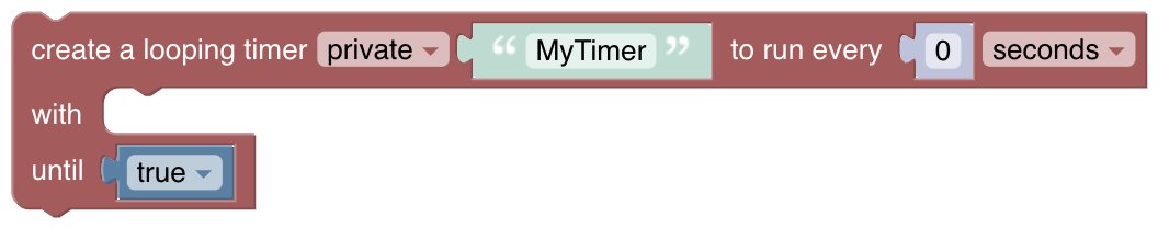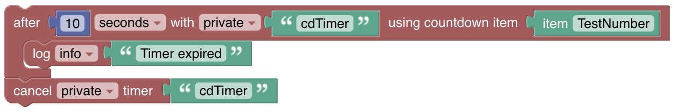 The timer created by this block can be used with the standard âcancelâ and âhasTerminatedâ blocks in the âTimers and Delaysâ category (support for the rest will be added at a future date).