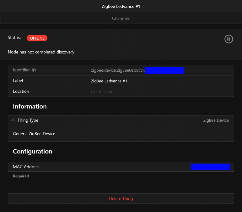 New devices, of which I have no XML-Config, are displayed in OpenHAB as “offline” with the reason “Node has not completed discovery”.