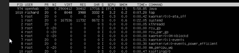When I add a cpu core(from 1 to 2), and start openhab, Java immediately spikes to 196% cpu and the page doesnt load. It never settles. Would anyone know why this is the case? Latest stable build of Openhab; java openjdk v 8. How can i debug this? Ubuntu 20.04.