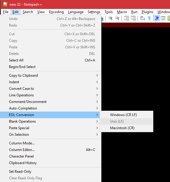 If you’re using OH in Linux, then it is likely the EOL. Notepad++ has a setting for this, and you can set a default. You can just change the EOL for the file in Notepad++ and save the file to change it.