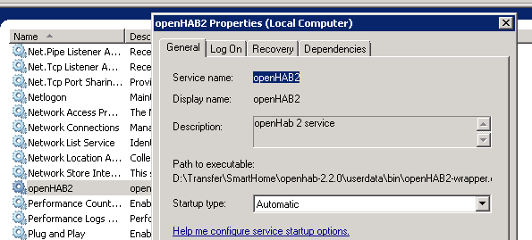 Attempting to start openHAB2 as an NT service.