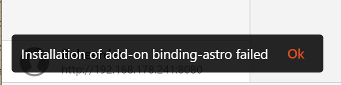 After the install, and configuring the user, when i try to add add-ons i get this error message: