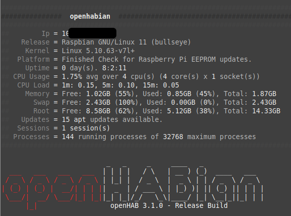 What command will trigger Openhabian welcome screen and where Openhabian gets that IP address on welcome screen from?