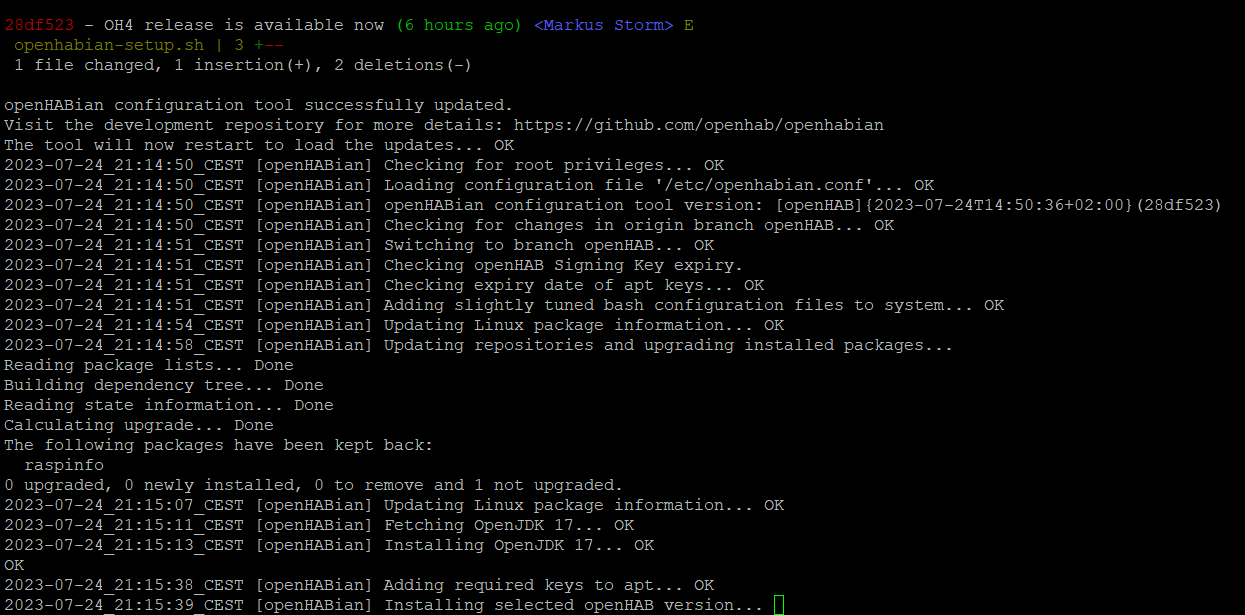 Issue of the topic: Trying to update OH 3.4 to 4 via ‘Openhabian-config’. Fails at “Fetching OpenJDK 17”