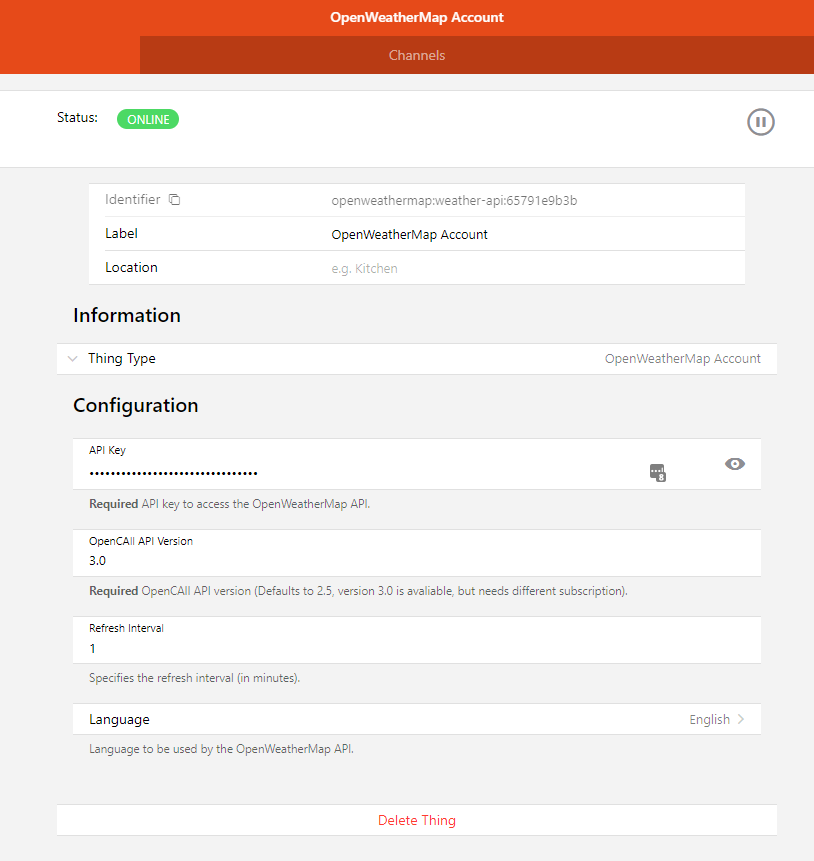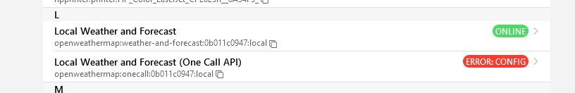 Unfortunately, when I create the Bridge and the OneCall Thing in Openhab, the bridge as well as the OneCall thing states change to âOFFLINEâ.