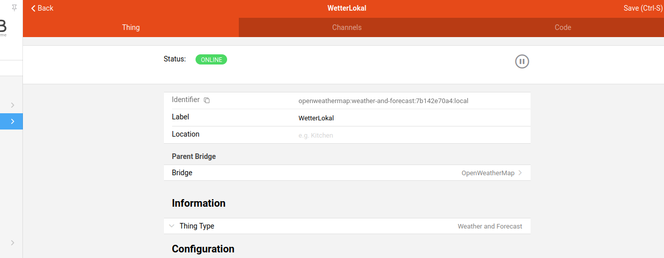 The strange thing is, when I create the âweather-and-forecastâ as thing, everything works normal, bridge and thing are ONLINE afterwards.