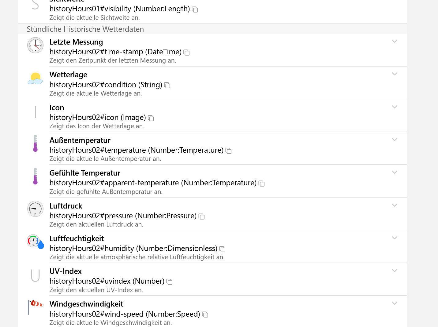 You don’t need the historic channels from OWM to generate charts, just the current readings. Just navigate to the Item…
