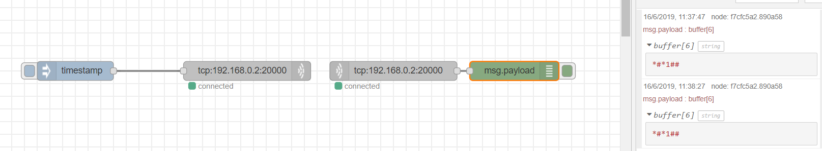 - If I send something to the MyHomeServer1 using a simple Node-RED flow, I get