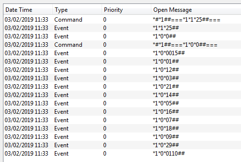 My interpretation of your log is that as soon as the “all-off” command is sent *1*0*0##, all lights that are configured to respond to GEN/AREA will switch off, and an event message is sento correctly on the BUS for each light.