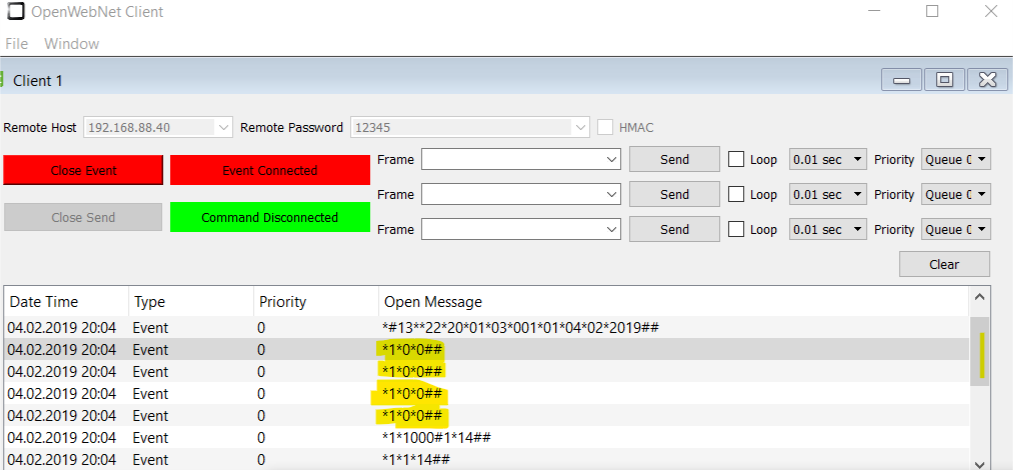 frame inviato dal client OpenWebNet