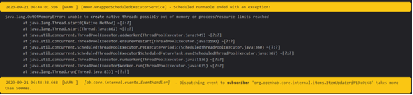 2023-09-22 00:13:28.721 [WARN ] [mmon.WrappedScheduledExecutorService] - Scheduled runnable ended with an exception: