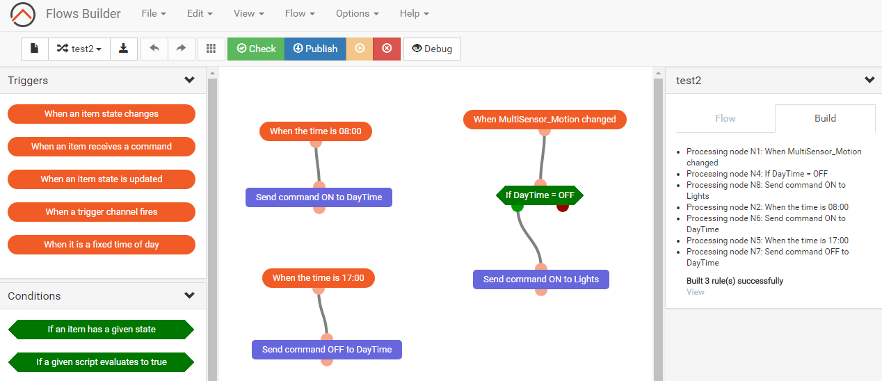 - With an intermediate item (could be a Switch or a String), and “when it is a fixed time of day” triggers. No coding required in this case