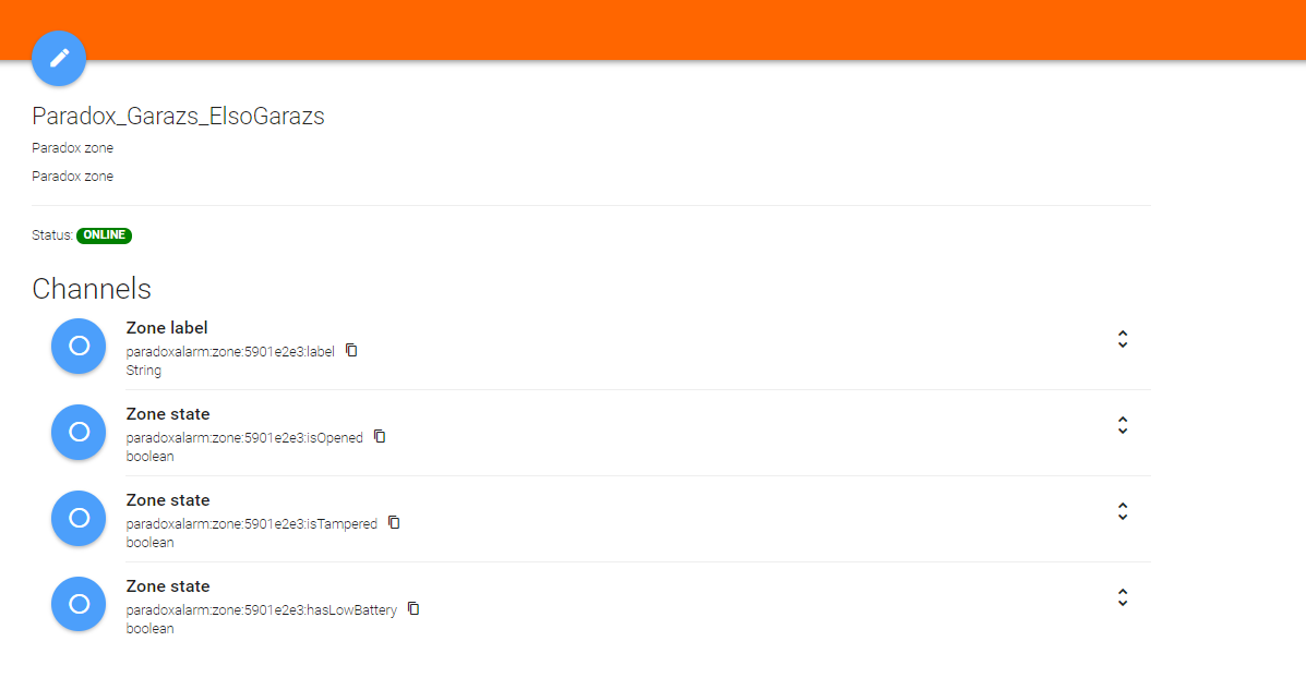 String partition1State “Magnetic sensors - Floor 1: [%s]” (Partitions) { channel = “paradoxalarm:partition:ip150:partition1:state” }