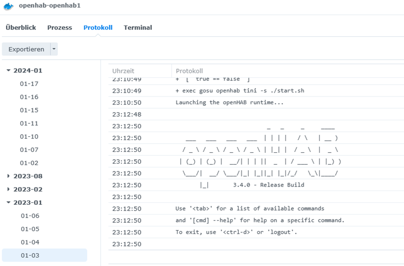 openhab@MyNAS:~$ docker exec -ti openhab-openhab1 /openhab/runtime/bin/client