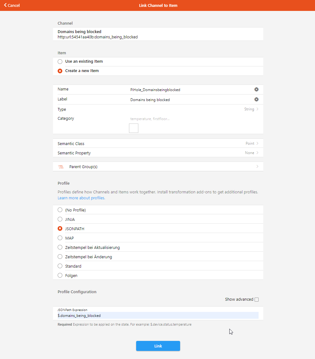 Thing http:url:pihole "PiHole" [baseURL="http://PI-HOLE_IP:PI-HOLE_PORT/admin/api.php", refresh=30, timeout=3000] {