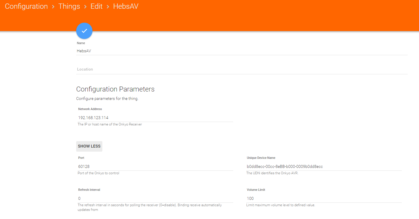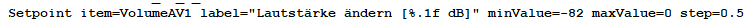 my understanding is that the linked volume item to the thing “HebsAV” must be a Dimmer…so I linked my item Device_HebsAV_Volume. But I also created a number item VolumeAV1 and in sitemap this SetPoint: