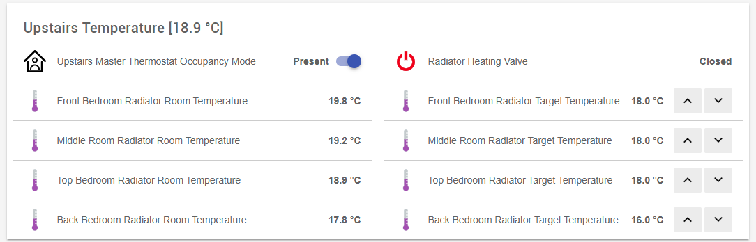So I am planning to provide a better solution with a more intelligent system and easier to program or adjust, using openHAB to have easy access to a control interface, and electronic valves to control the radiators and be able to see if they are heating or closed, and set temperature setpoint independently.