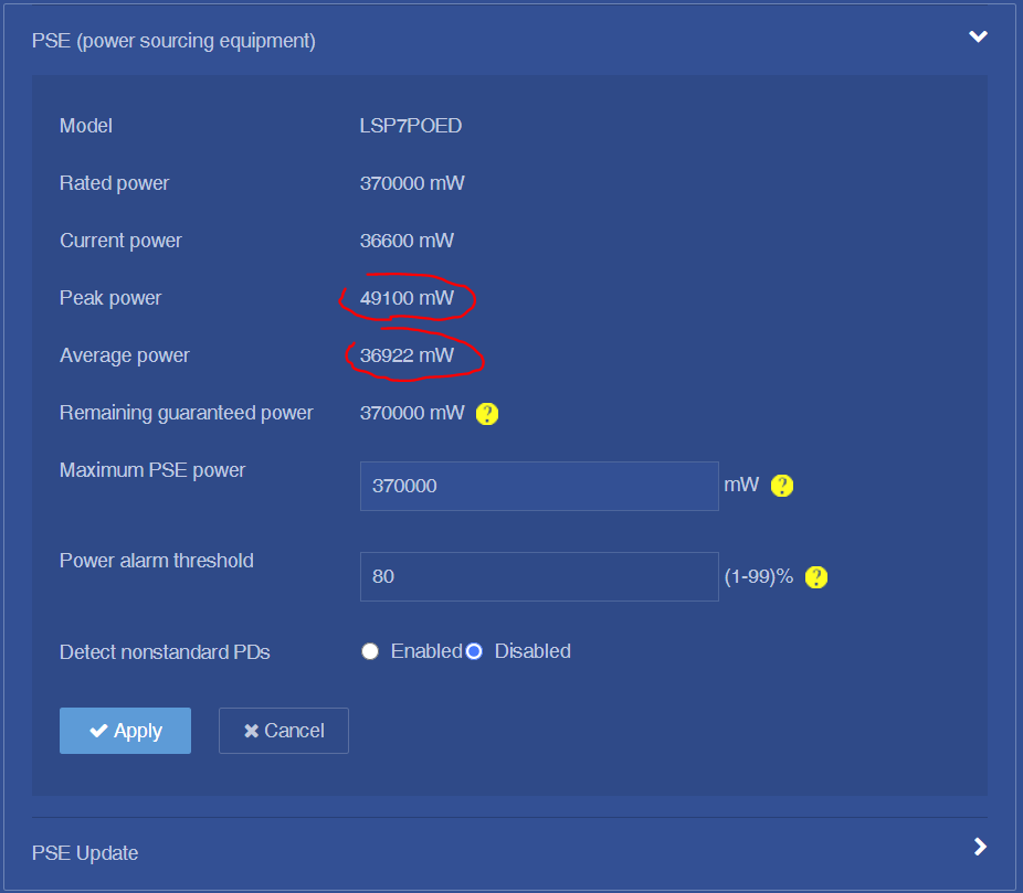 EDIT: Just checked the power sourced by the switch for the above PoE devices …