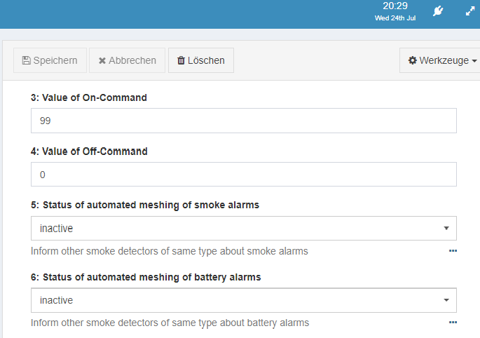 I changed parameter 5 and 6 with Habmin, because I don’t want to mesh the smoke alarm and low battery alarm through the whole house.