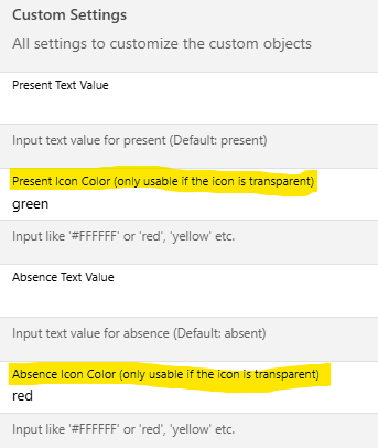 label: Absence Icon Color (only usable if the icon is transparent)