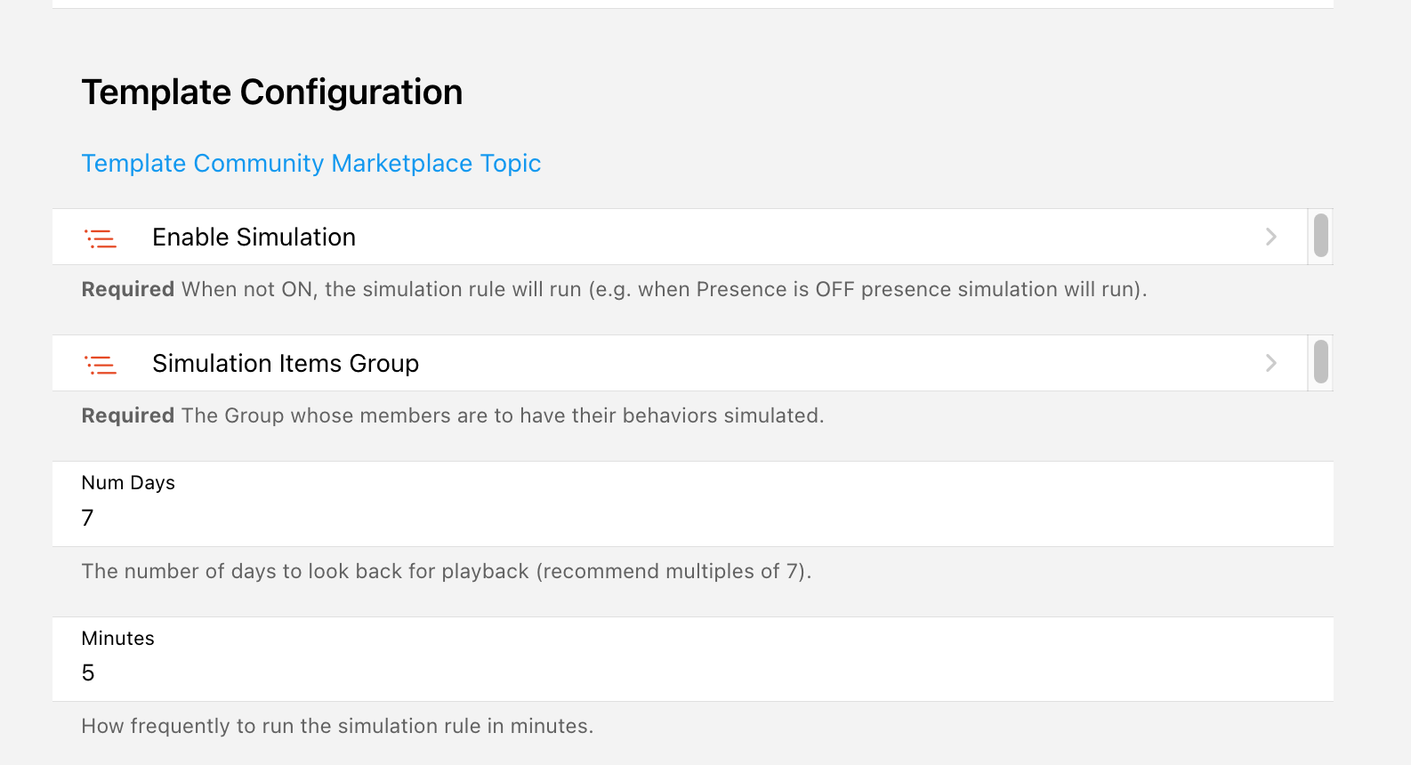 Warning: If you’ve installed this template prior to OH 4.2 M3, you will need to remove and re-add the templated from the add-on store and then instantiate the rule to pick up the changes that lets the template work with the breaking changes introduced in 4.2 M3.