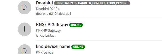 2020-05-14 12:28:36.483 [hingStatusInfoChangedEvent] - 'doorbird:d210x:doorbell' changed from UNINITIALIZED (HANDLER_CONFIGURATION_PENDING) to UNINITIALIZED (HANDLER_MISSING_ERROR)